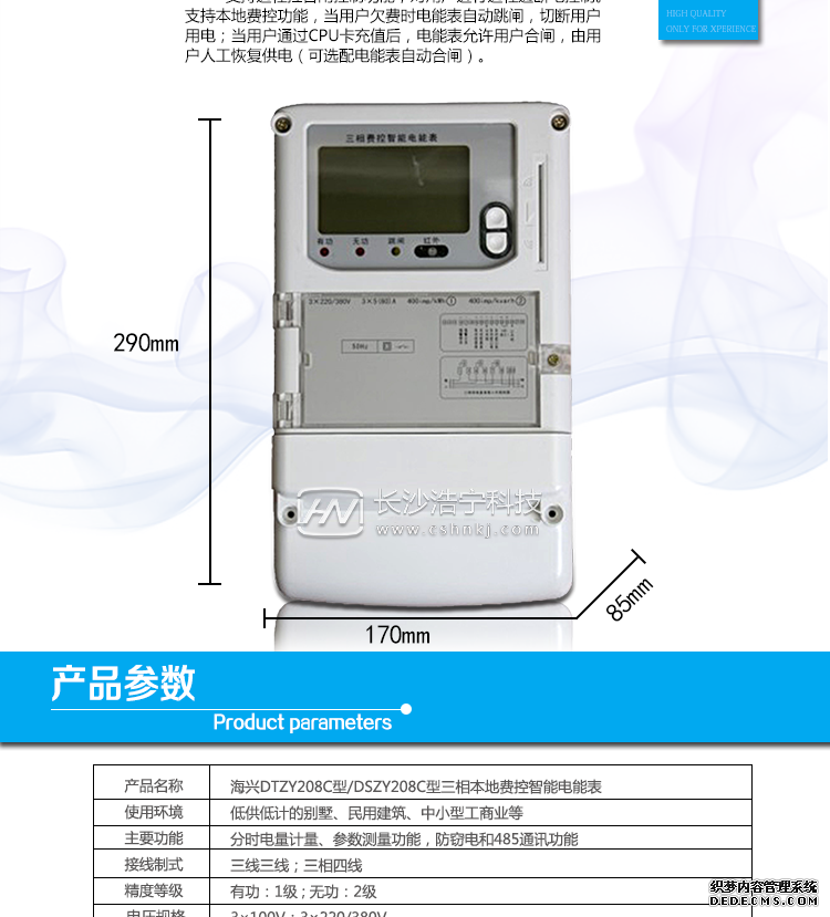 杭州海興DTZY208C三相四線本地費(fèi)控智能電能表